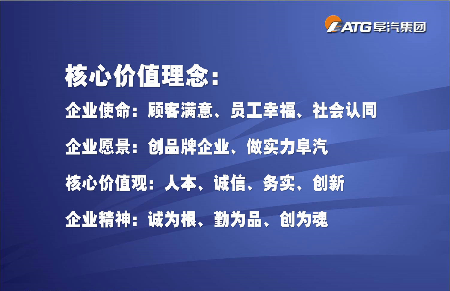 一、企業(yè)愿景:創(chuàng)品牌企業(yè)、做實力阜汽